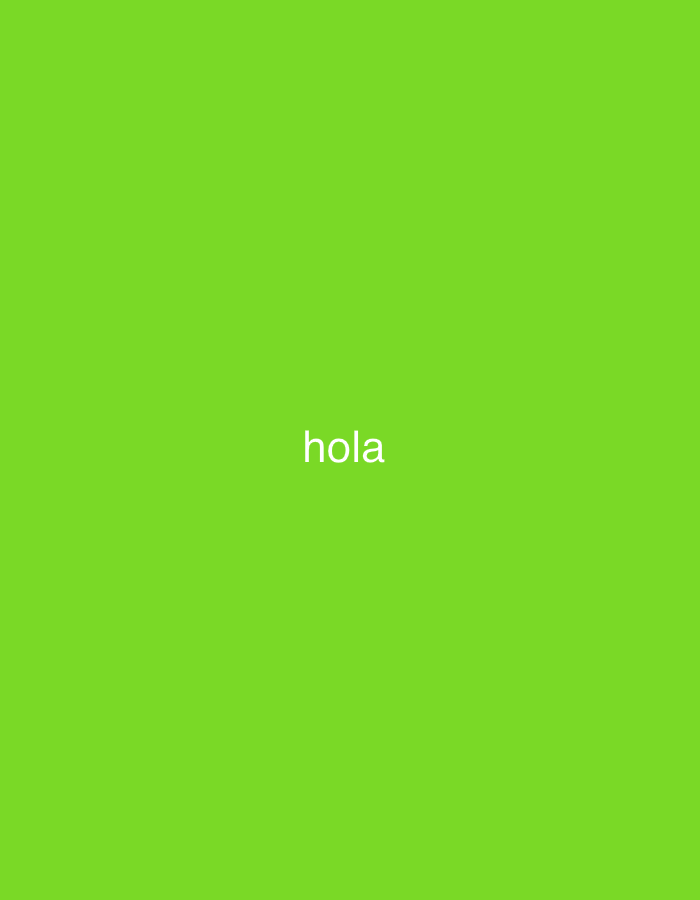 A vibrant lime green background fills the frame. Centered horizontally and vertically is the word "hola" in a clean, white sans-serif font. The text is clear and legible against the solid background. The overall composition is simple and minimalist, with a focus on color and text.