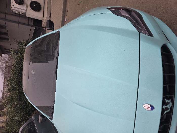 - "A matte light blue Maserati sedan, featuring a black roof and black side mirrors, is parked outdoors in Kazanlak, Bulgaria" by FM-7drKy2, licensed under CC BY 4.0
