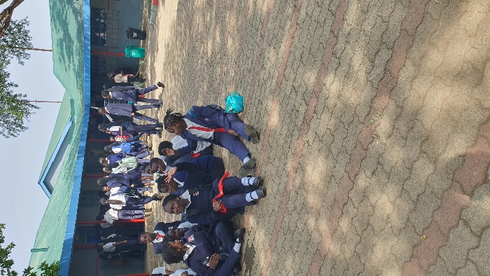 This image depicts an outdoor scene within a school compound in Kisumu, Kenya