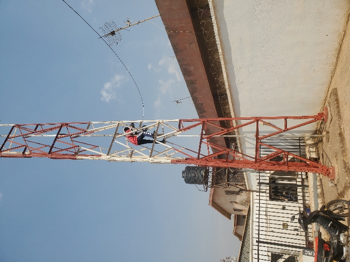 - "This image, captured in Sabon Gari North, Nigeria, depicts an outdoor urban scene featuring a communications tower and a person working on it under a clear sky" by FM-wD7Od2, licensed under CC BY 4.0