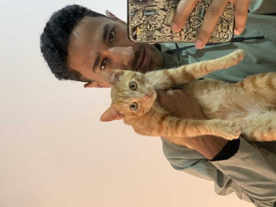 - "The image depicts an indoor scene featuring a male individual holding an orange tabby kitten and a smartphone" by FM-db0142, licensed under CC BY 4.0
