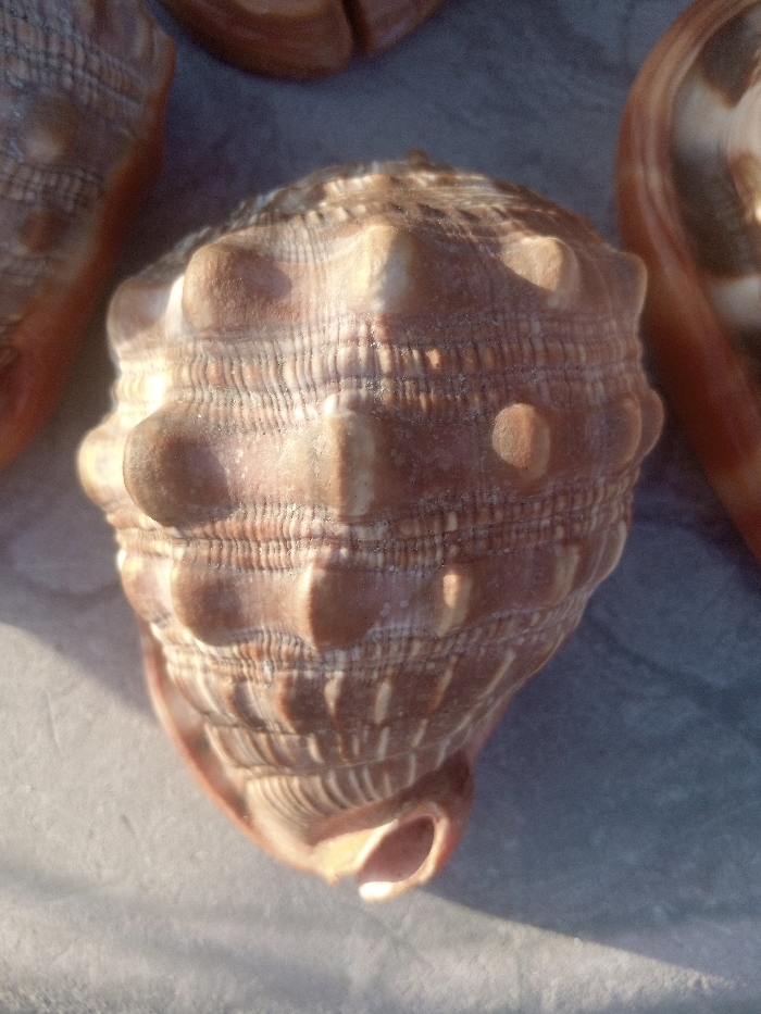 - "A robust gastropod seashell, approximately 15-20 cm in length, is depicted in a close-up, top-down view, positioned on a light gray, textured surface in Makadara/Mji Wa Kale ward, Kenya" by FM-vsiag2, licensed under CC BY 4.0