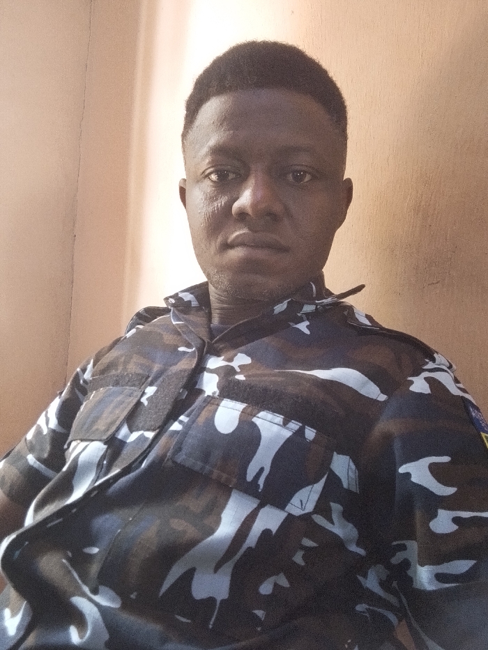 A single adult male with dark complexion and short, dark hair is depicted in a close-up, chest-up portrait