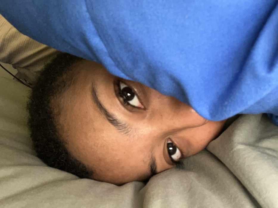 - "A person lies in bed, partly covered by a blue blanket" by FM-54qXV2, licensed under CC BY 4.0