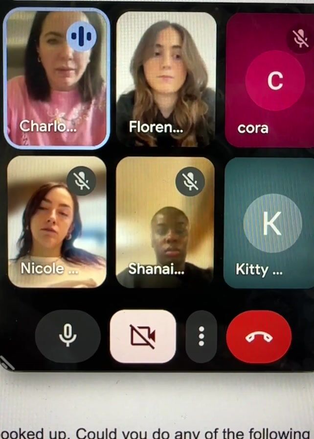 screen capture of a Google Meet or similar video conference call with six participants