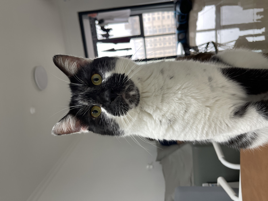 - "The image displays a domestic cat with distinctive black and white fur, situated in an indoor environment within Jinshui District, China" by FM-oJoph1, licensed under CC BY 4.0