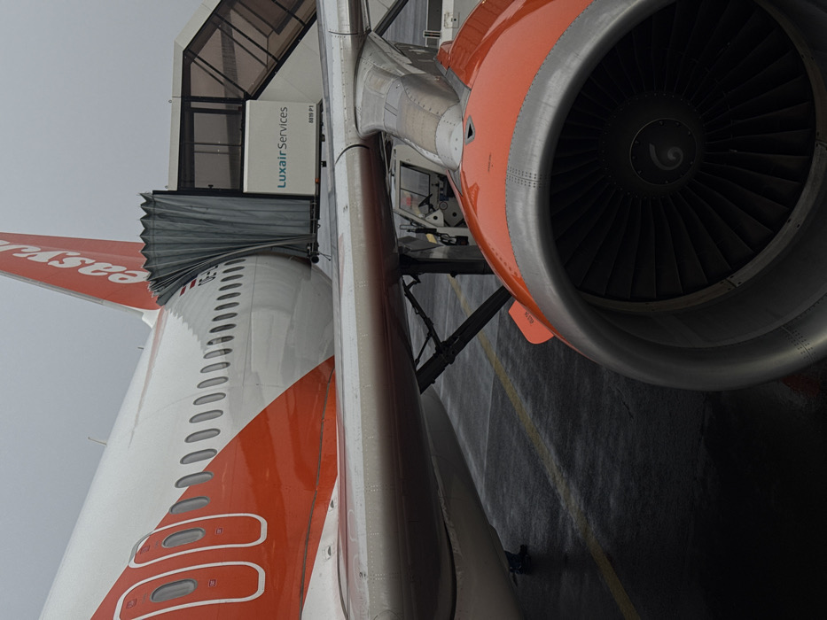 - "An EasyJet plane is docked at a Luxair Services gate, as seen from a low angle" by FM-euyLP2, licensed under CC BY 4.0