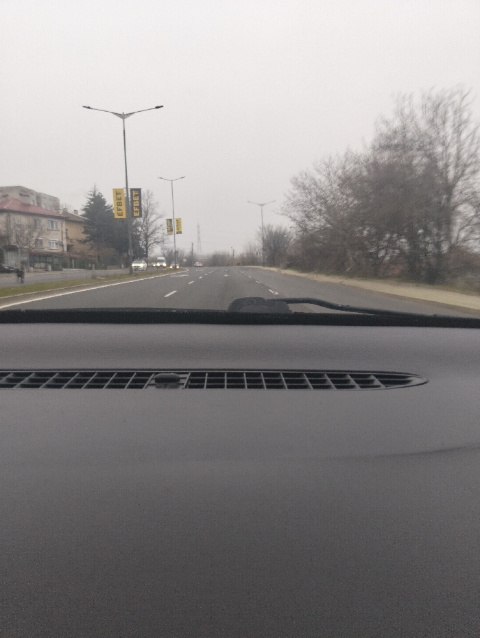 - "The image depicts a forward view from the interior of a vehicle in Kardzhali, Bulgaria, focusing on a multi-lane road under overcast or foggy conditions" by FM-jFSwk1, licensed under CC BY 4.0