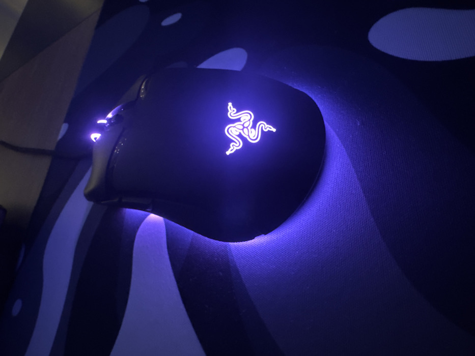 - "The scene depicts a black Razer brand computer mouse resting on a patterned mouse pad, located indoors on a desk surface in Stara Zagora, Bulgaria" by FM-KTKtd2, licensed under CC BY 4.0