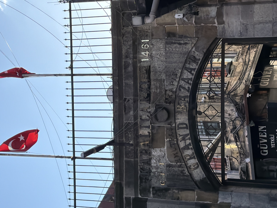 This image captures the Mahmutpaşa Gate of the Grand Bazaar in Istanbul, Turkey