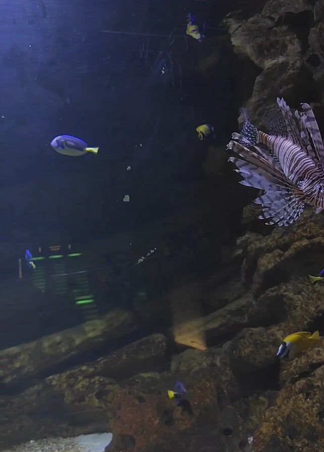 - "n aquarium with fish swimming around rock structures and a lionfish" by FM-GiKA22, licensed under CC BY 4.0