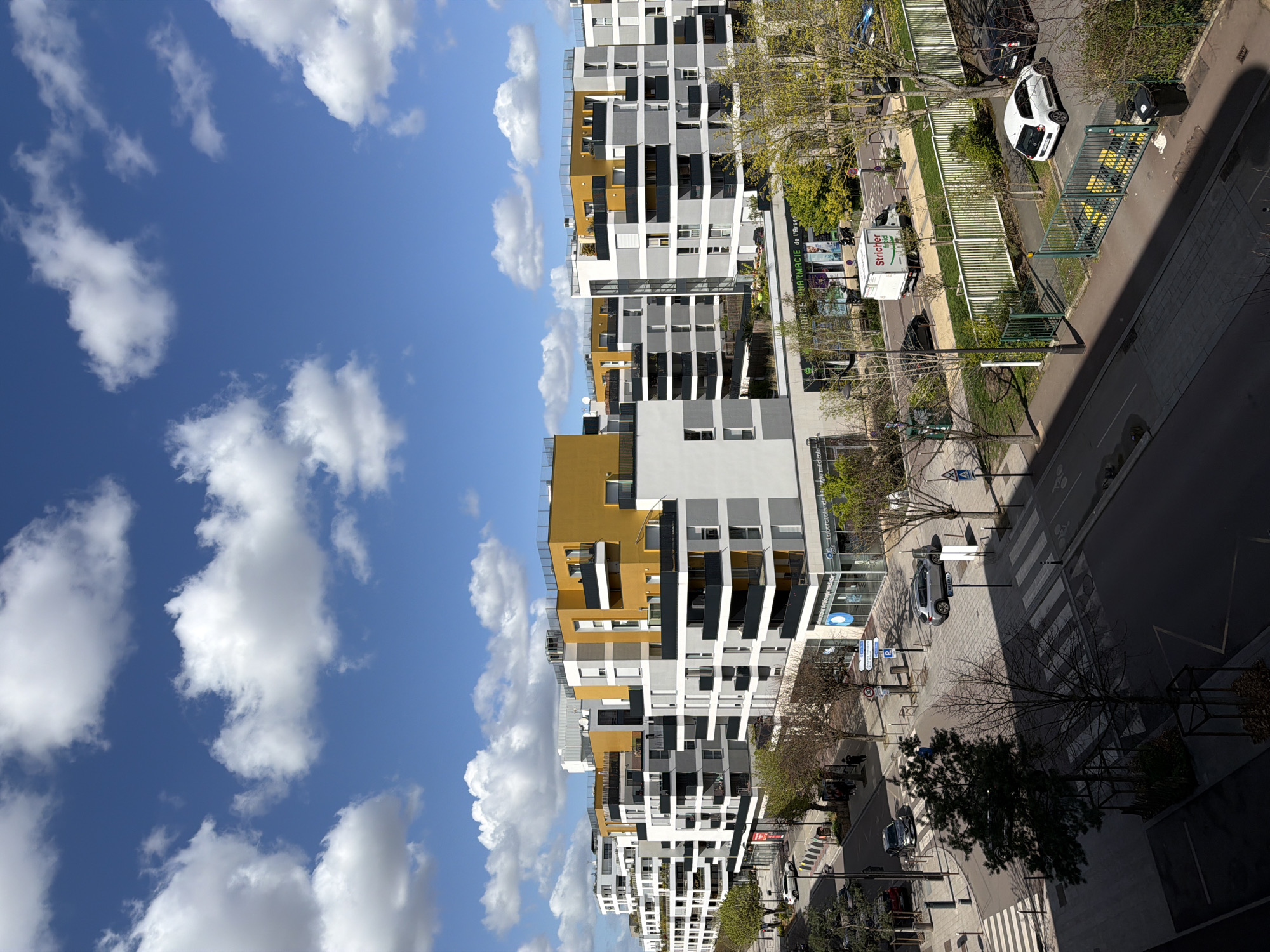 - "An aerial perspective depicts a modern urban scene in Rueil-Malmaison, France, under a clear blue sky with scattered white cumulus clouds" by FM-DVYth1, licensed under CC BY 4.0