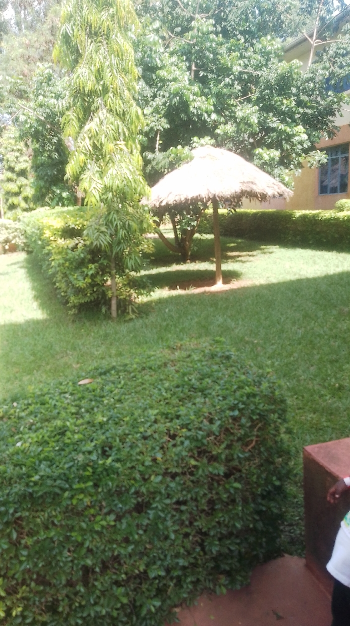 The image displays a well-maintained outdoor green space located in Siaya Township ward, Kenya