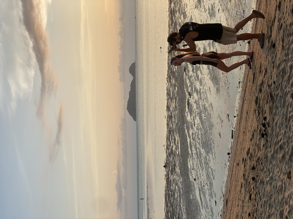 The scene depicts a beach at Baan Sri Thanu, Thailand, during sunset or dusk