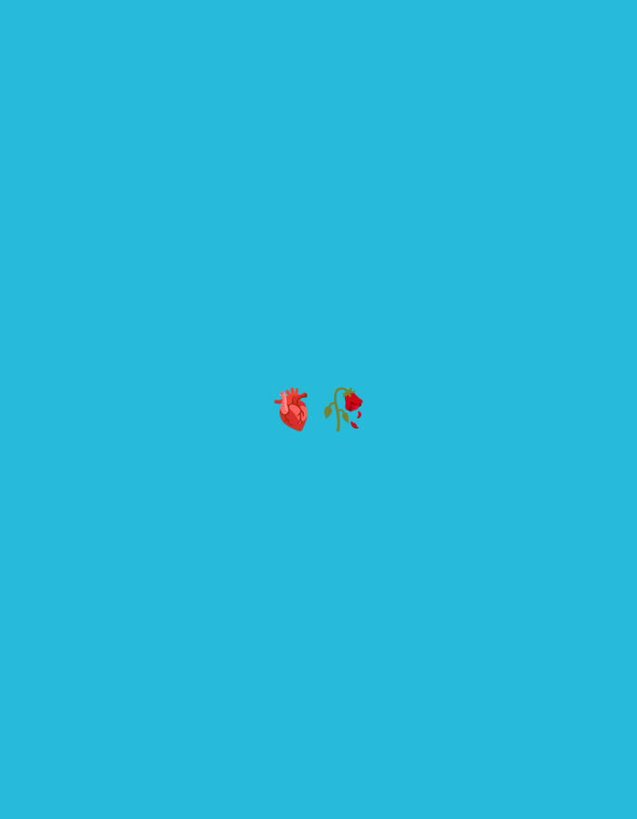 The image features a solid, uniform blue-turquoise background. Centrally positioned are two graphic illustrations. On the left, an anatomical human heart, colored red with visible arteries and veins. To its right, a wilting red rose with a green stem and leaves. The rose appears to be bleeding or dripping red liquid from its petals. No individuals are present. No explicit actions are depicted. The environment is devoid of any contextual elements that would indicate a physical location, rendering information about Jizzakh, Uzbekistan, unidentifiable from this image.