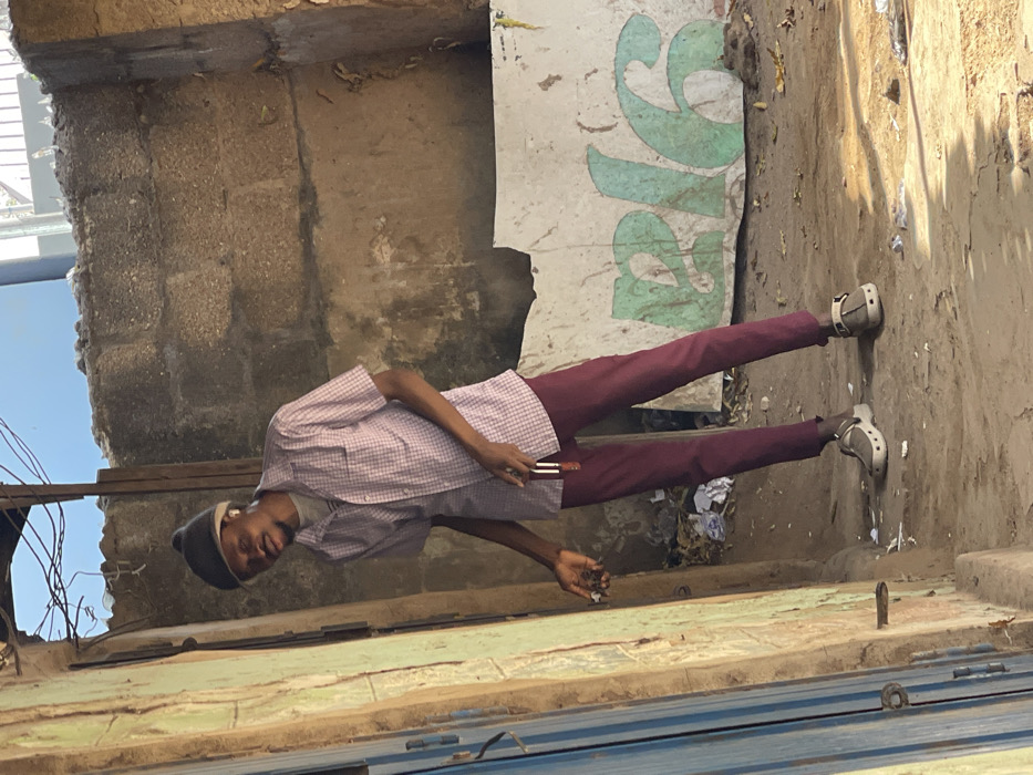 An individual stands in an outdoor, unkempt area in Zaria, Nigeria