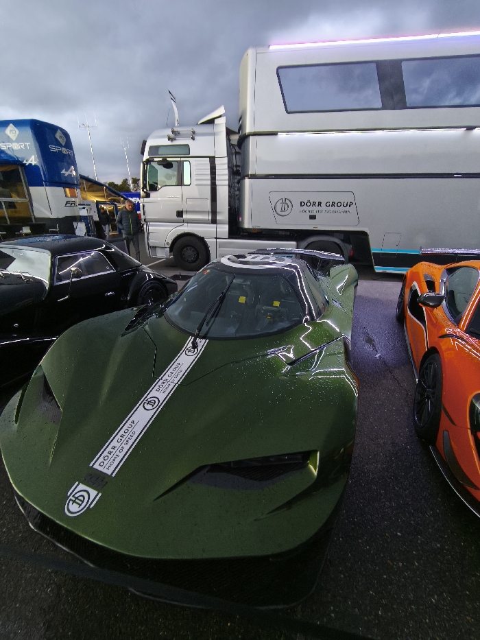 - "This image depicts an outdoor vehicle staging area, likely a paddock at the Hockenheimring racetrack in Hockenheim, Germany, under an overcast sky with a wet asphalt surface" by FM-Jkoop1, licensed under CC BY 4.0