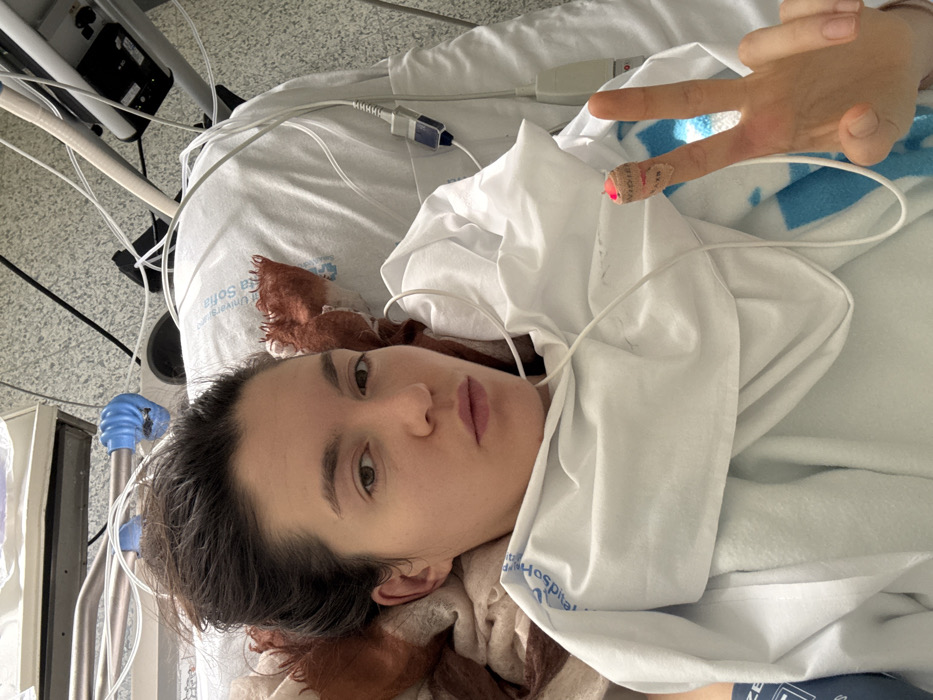 - "A young adult female is depicted lying in a hospital bed, looking directly at the camera" by FM-rO2js2, licensed under CC BY 4.0