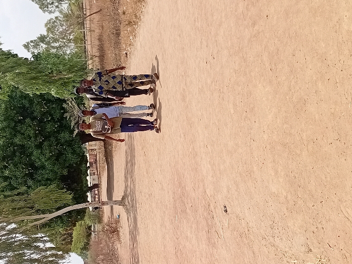 - "Four young males are depicted walking towards the viewer on a reddish-brown dirt path in an unpaved area within Unknown, Nigeria" by FM-hOY7l2, licensed under CC BY 4.0