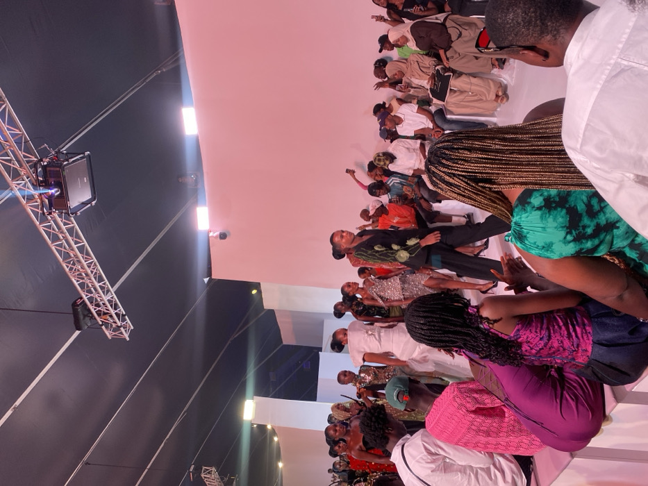 The image depicts an indoor fashion event occurring in Itirin, Nigeria