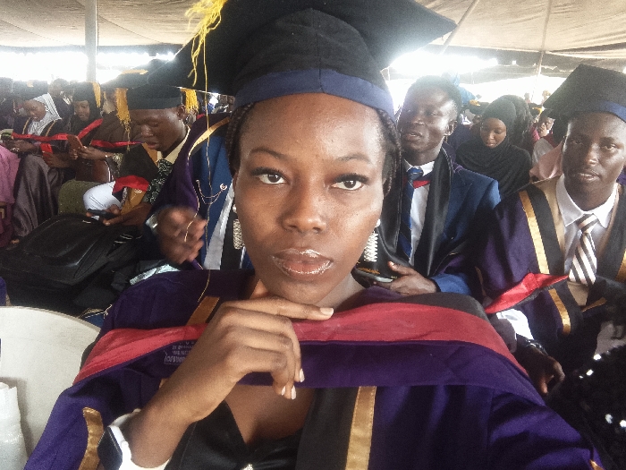 The image portrays an outdoor or semi-outdoor graduation ceremony in Unknown, Unknown