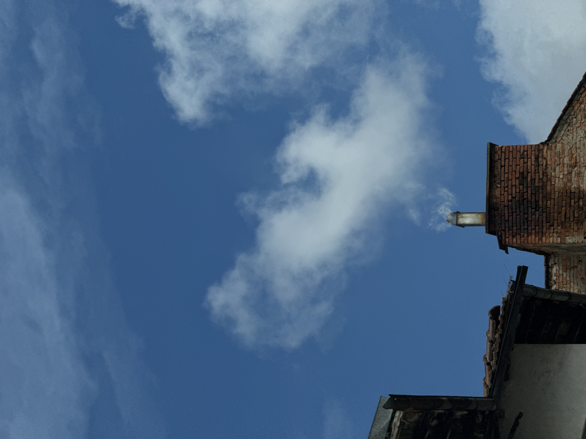 - "The image depicts a view of the sky with clouds and part of a building's roof and chimney" by FM-ANEzp1, licensed under CC BY 4.0