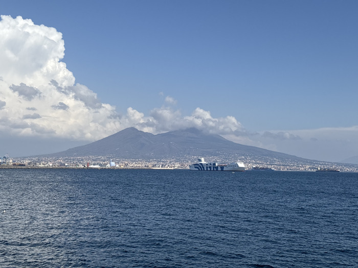 - "The image displays a panoramic view of the Bay of Naples, Italy, under a bright blue sky with scattered white cumulus clouds" by FM-69hBB3, licensed under CC BY 4.0
