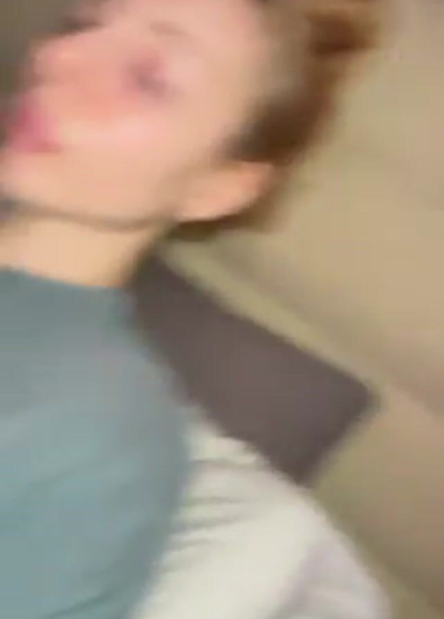 A fair-skinned person with long hair is lying on a couch or bed