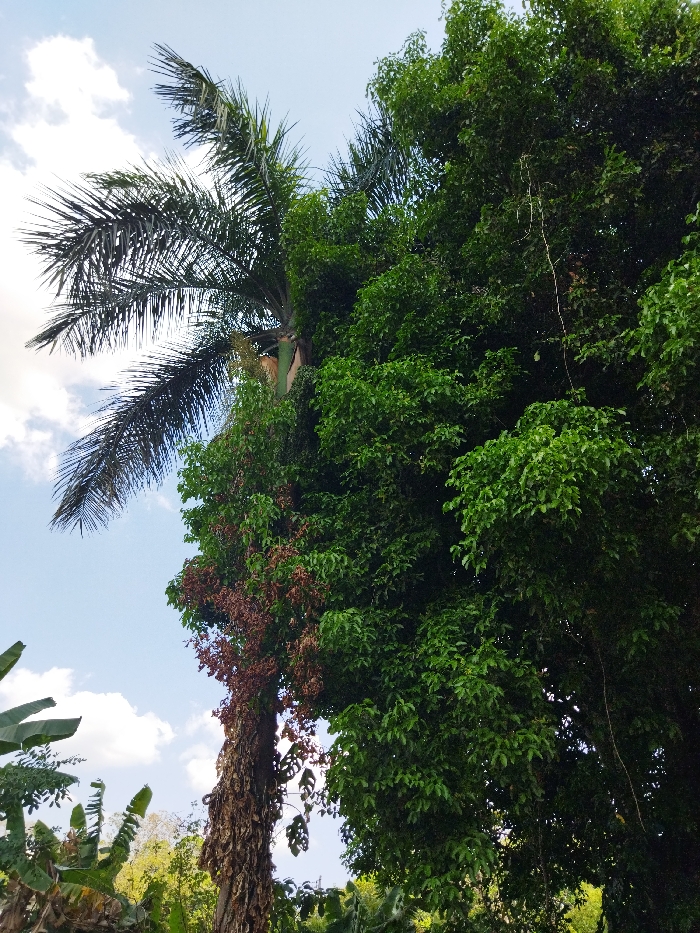 - "The image depicts a dense botanical scene in Tinaquillo, Venezuela, captured from a low-angle perspective against a partially clouded light blue sky" by FM-6IJBE3, licensed under CC BY 4.0