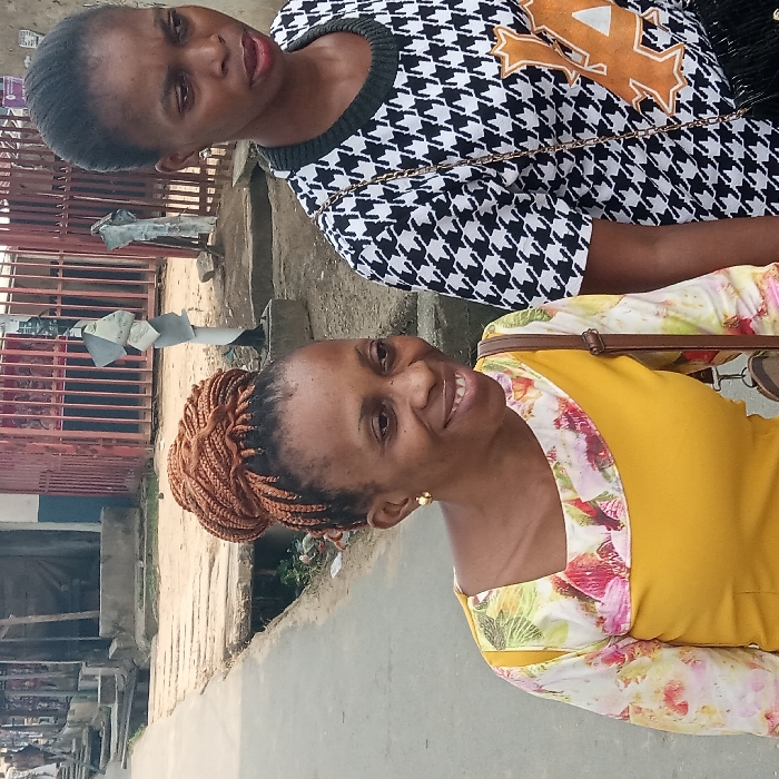 Two adult females are captured in a daylight scene on a paved surface in Umuode, Nigeria