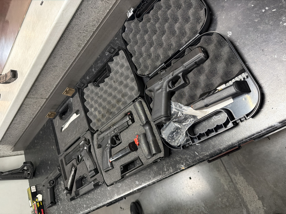 - "The image depicts a collection of firearms and related accessories laid out on a dark, textured countertop, likely within a shooting range or gun store in Krasnoyarsk, Russia" by FM-cupxe2, licensed under CC BY 4.0