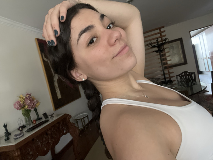 - "A woman with dark hair in a braid is angled to the left of the frame, wearing a white tank top and a delicate silver necklace" by FM-3PMzr1, licensed under CC BY 4.0