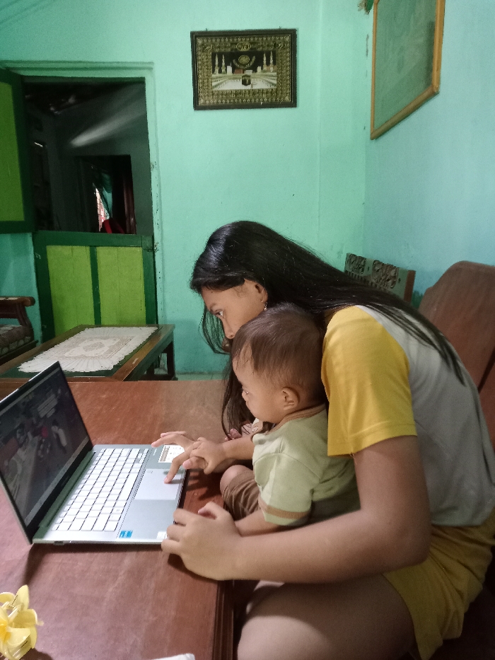 - "Within an indoor setting in Kecamatan Pati, Indonesia, a young woman and an infant are seated at a dark wooden table" by FM-2nZTV2, licensed under CC BY 4.0