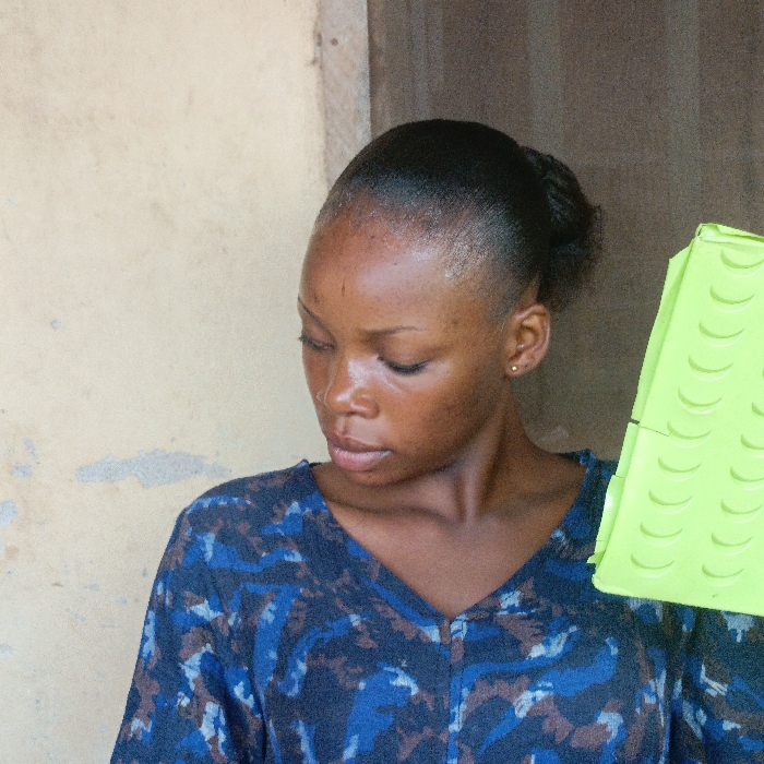 A young adult woman is depicted in a medium shot within the city of Akwanga, Nigeria