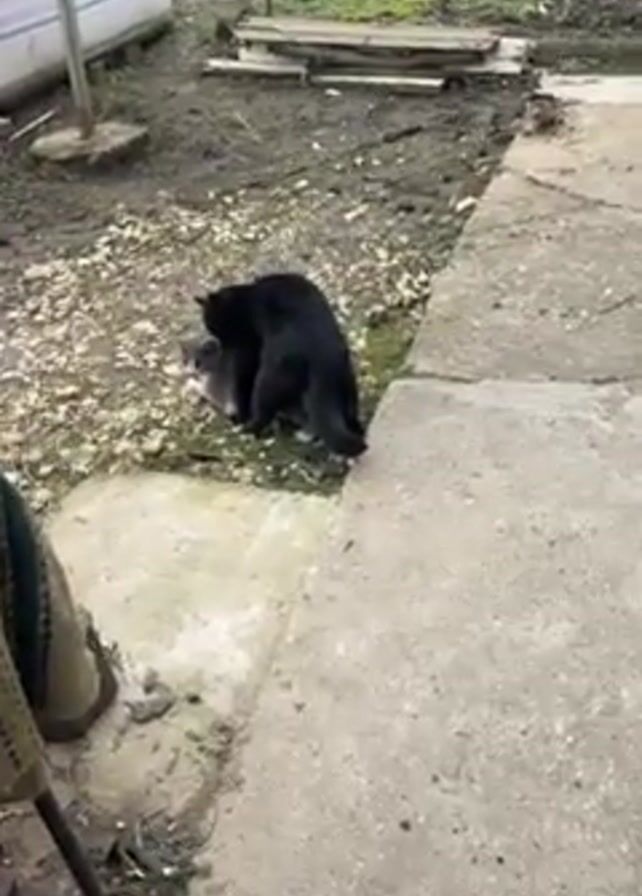 two cats fighting in an outdoor setting