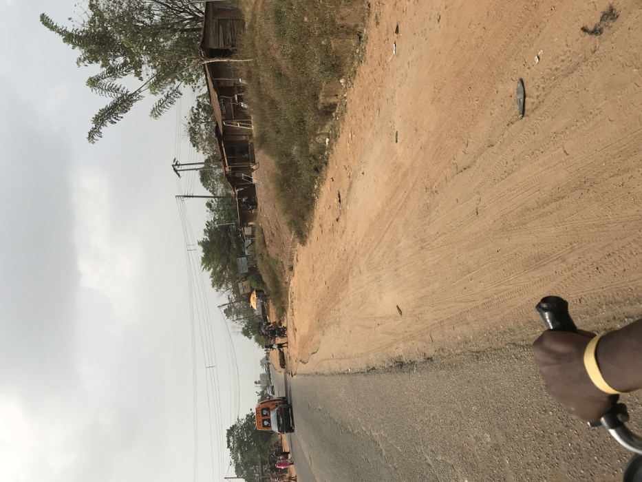 - "The image presents a roadside scene in Oba-Ile, Nigeria, viewed from the perspective of an individual operating a bicycle or motorcycle, evidenced by a dark-skinned hand with a yellow wristband gripping a handlebar in the lower-left foreground" by FM-eGIJq1, licensed under CC BY 4.0