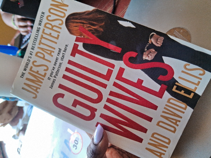 - "The image displays a close-up view of the book "GUILTY WIVES" by James Patterson and David Ellis, held in an indoor setting in Karingani ward, Kenya" by FM-UrRWw2, licensed under CC BY 4.0