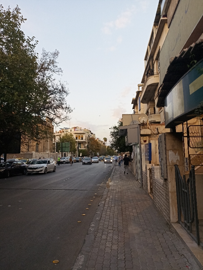 - "The image displays a wide street scene in the city of Al-Muhajerin Municipality, Syria, under late daylight or twilight conditions" by FM-6eLZi2, licensed under CC BY 4.0