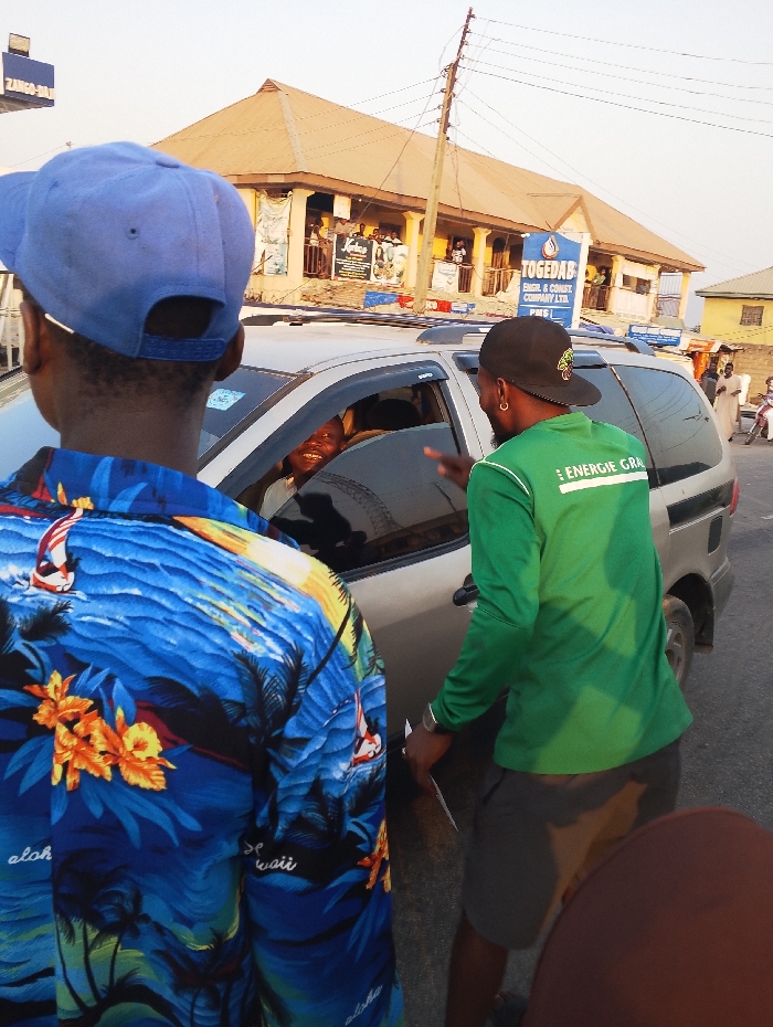 The image captures an outdoor street scene in Zango-ndaji, Nigeria, under daylight conditions