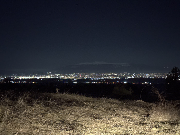 - "The image displays a panoramic nighttime view from an elevated position, looking out over a distant city from within or near Voynegovtsi, Bulgaria" by FM-NZAzQ2, licensed under CC BY 4.0