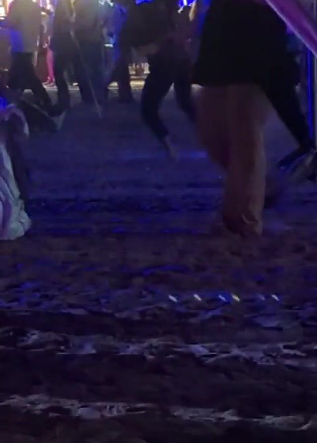 The video depicts a crowded outdoor scene at night, likely a festival or fair
