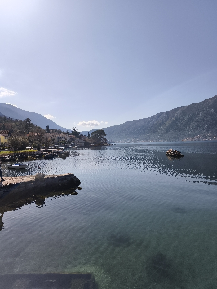 - "The image captures a wide-angle view of the Bay of Kotor from the coastline of Dobrota, Montenegro, under a clear, light blue sky with minimal cloud cover" by FM-gvviH3, licensed under CC BY 4.0