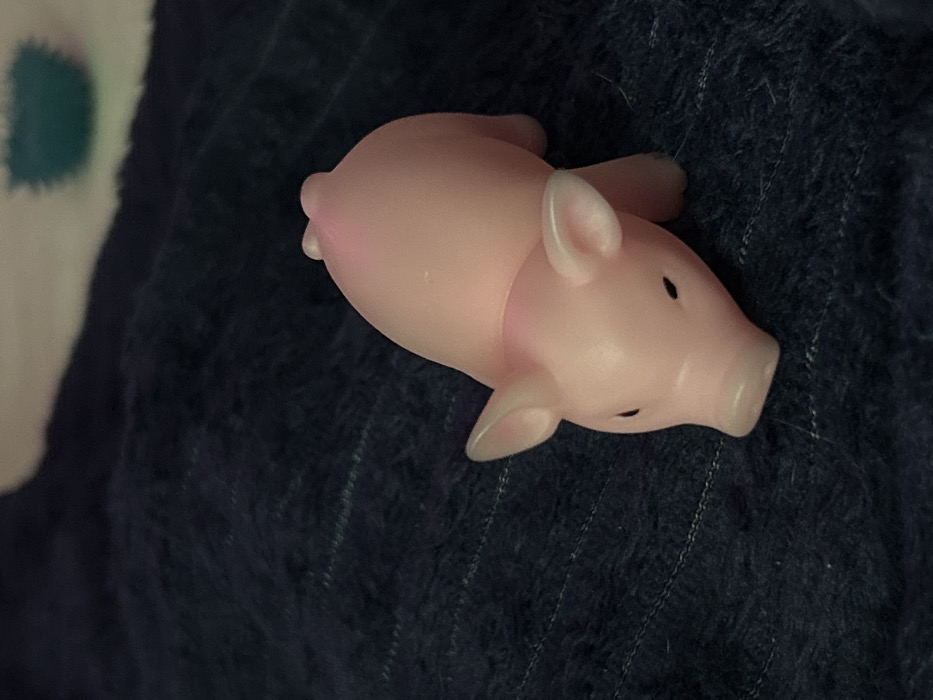 - "A pink, rubber pig toy lies on a dark blue, textured surface" by FM-5FD7E2, licensed under CC BY 4.0