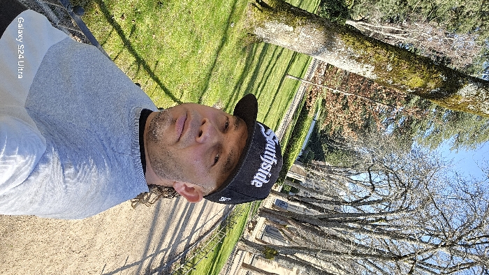 An adult male is captured in a selfie within the formal gardens of the Royal Palace of La Granja de San Ildefonso, Real Sitio de San Ildefonso, Spain