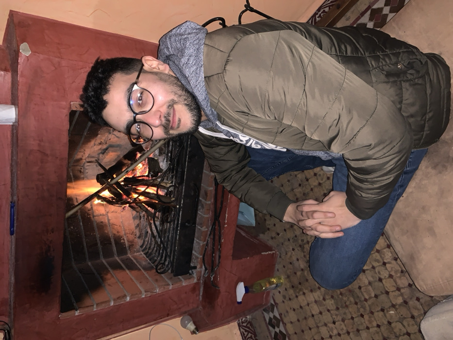 - "A man with glasses and a beard kneels next to a brick fireplace with a roaring fire" by FM-5gXC02, licensed under CC BY 4.0