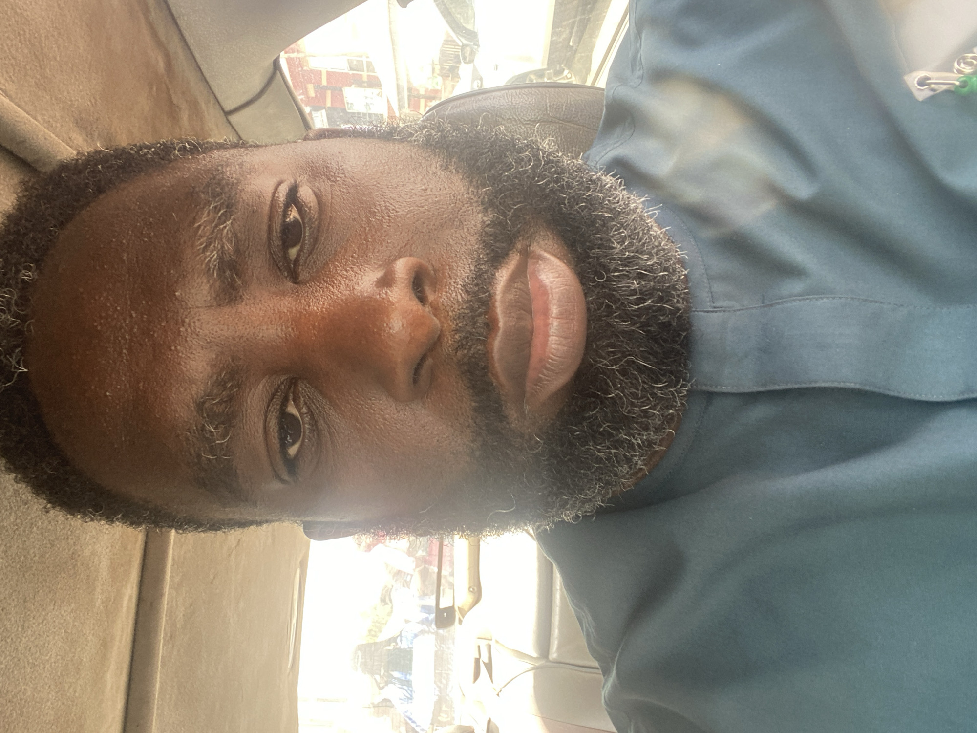 A close-up selfie of a middle-aged Black man with short, curly black hair and a graying beard