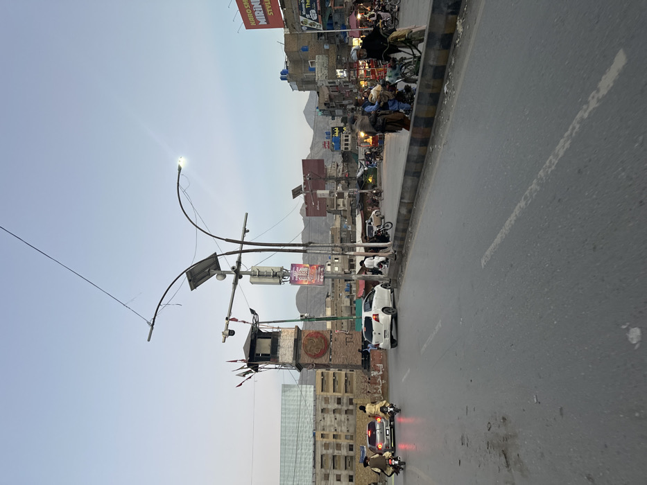 This image depicts an urban street scene at Ghanta Ghar Chowk, Quetta City Tehsil, Balochistan, Pakistan, during late afternoon or early evening