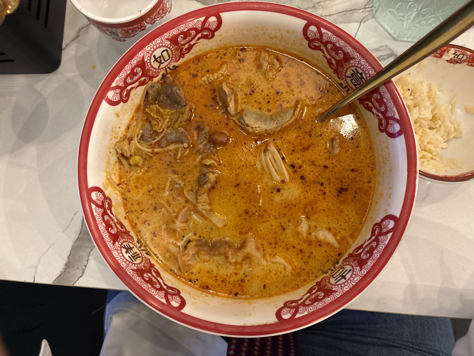 - "A bowl of Asian soup dominates the frame, filled with an orange-hued broth and visible meat, noodles, and vegetables" by FM-yD2SV2, licensed under CC BY 4.0