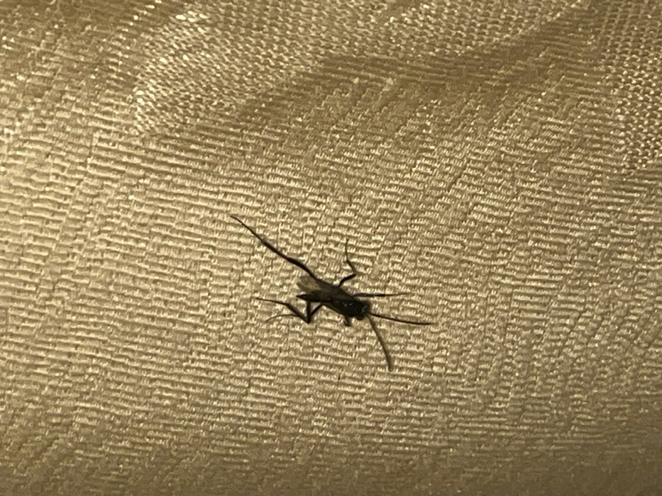 - "A single dark-bodied insect is observed stationary on a light gold, vertically ribbed woven fabric surface" by FM-V32Ws2, licensed under CC BY 4.0