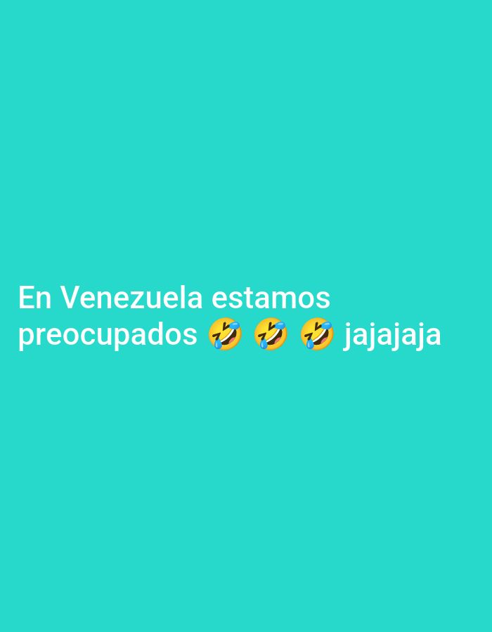 The image displays a digital graphic on a uniform teal background, attributed to the city of Macuto, Venezuela. White text is centrally positioned, reading "En Venezuela estamos preocupados," followed by three "face with tears of joy" emojis (😂), and then "jajajaja." There are no discernible people, physical objects, actions, or interactions depicted within this graphic. The environment consists solely of the solid color background and the superimposed text and emojis.